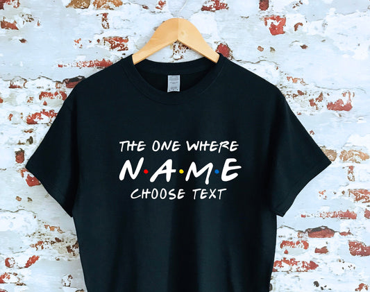 Custom Friends The One Where T-shirt,custom name and text, 100% cotton, multiple sizes available for adults and kids, perfect item for gift