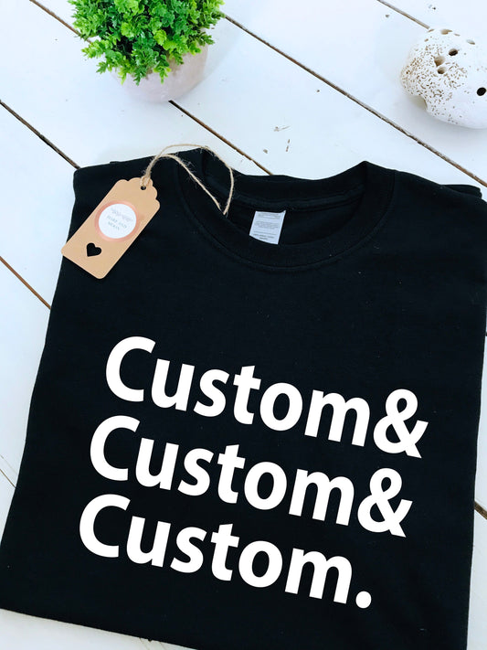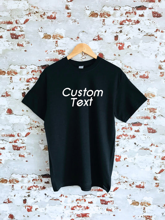 Custom text T-shirt, choose your text, mens, ladies & youth sizes available, multiple sizes and colours, design your tshirt, personalised