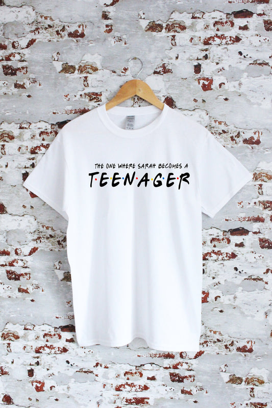 Personalised Friends Teenager T-shirt, custom text, 100% cotton, multiple sizes available, unisex & ladies tees, perfect birthday gift idea